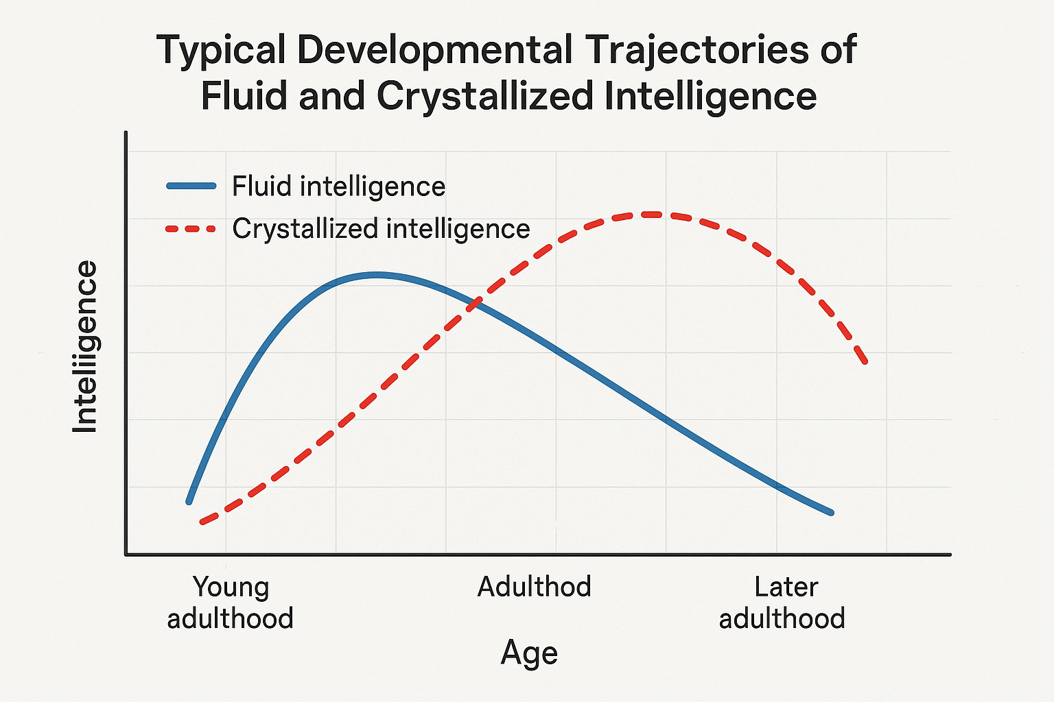 • **Later Adulthood (60s+):** Both intelligences may show some decline, but crystallized intelligence generally holds up better and longer than fluid intelligence. The wealth of accumulated knowledge and experience remains a significant asset.